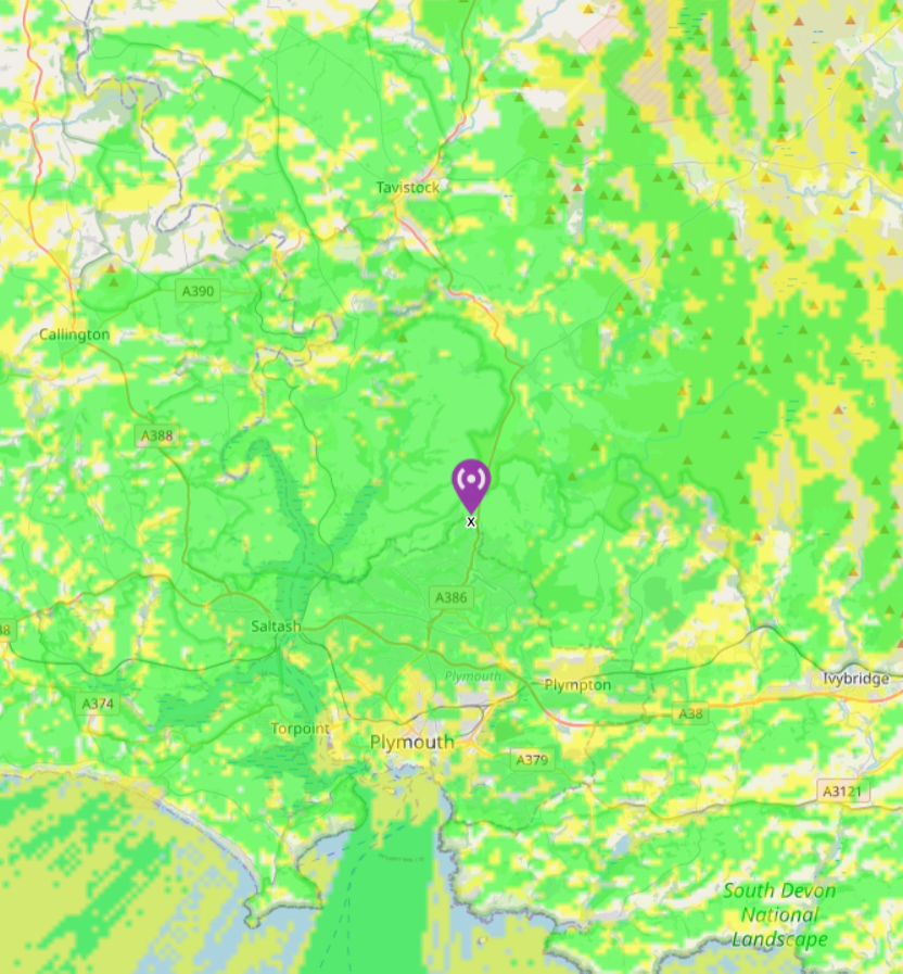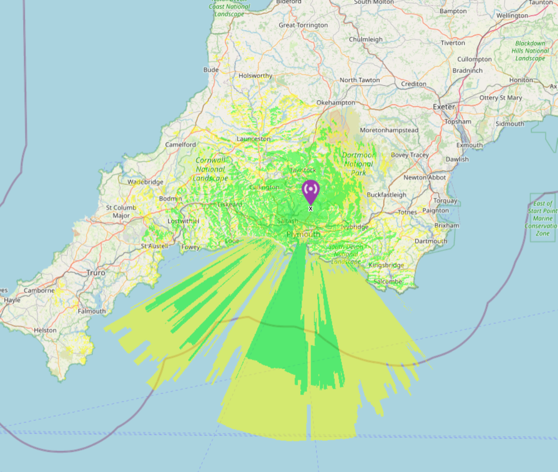Our UHF license authorizes operation within a 30 km radius of the primary licensed location at Norsworthy Bridge Car Park, Burrator Reservoir, Plymouth, PL20 6PG.